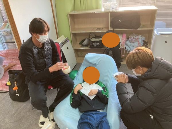 おやつを食べたりお友達や職員とボール遊びをして楽しく過ごされています!