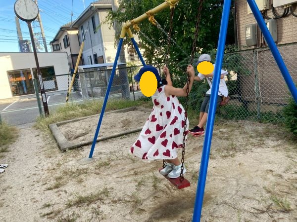 仲良くブランコを楽しんでいます!ブランコは気持ちがいいね☆