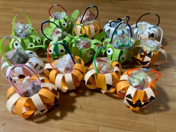 お菓子バケツの完成☆お菓子くれなきゃいたずらするぞ☆