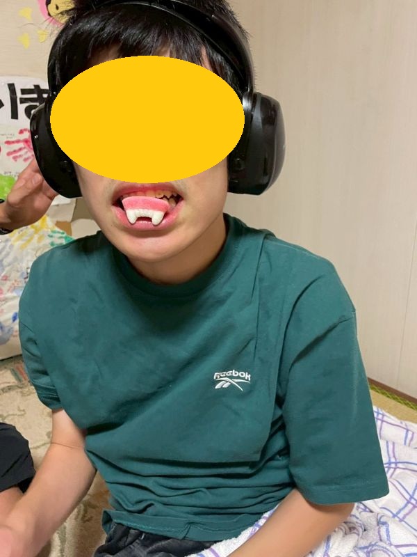 牙のお菓子を口につけて写真撮影!みんな可愛く変身です☆