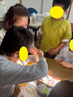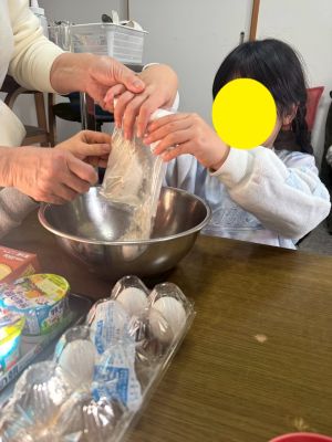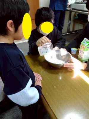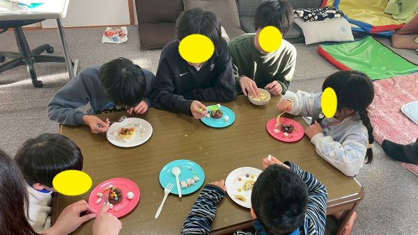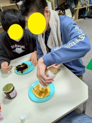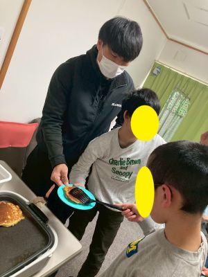 冬休みのおやつは創作の一環として、ホットケーキをみんなで焼いて食べました。