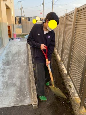 近くの公園にも遊びに行ってます。 外の掃除をお手伝い!!